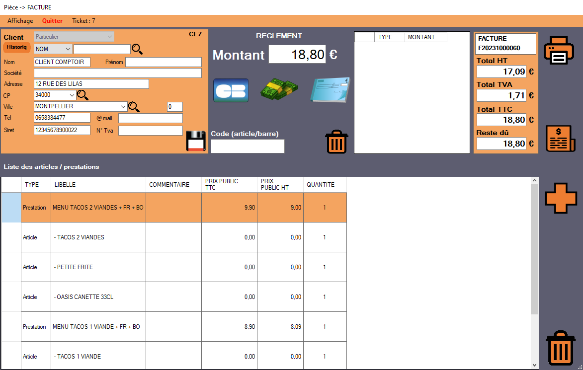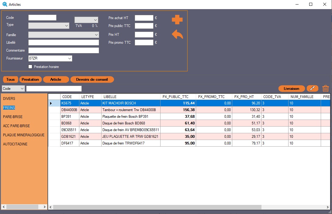 Ce programme gére les stocks, devis,commandes,BL,factures et avoirs, la gestion des règlements ainsi que le transfert en compta.